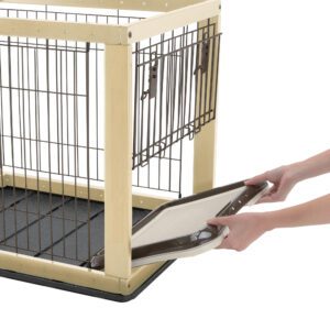 person opens side door of expandable pet crate
