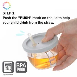 - Push from “PUSH” mark on the lid to encourage your baby to drink from the straw